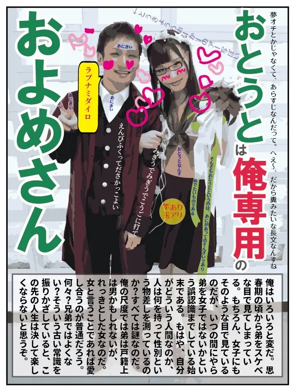 おとうとは俺専用のおよめさん 僕の命と引き換えにお母さんがこの世から去って十数年.。お兄ちゃんがアニヲタになったのも性癖がネジ曲がったのも全部僕のせい.。そうだ、おにいちゃんのおよめさんになろう! ベアトリクス