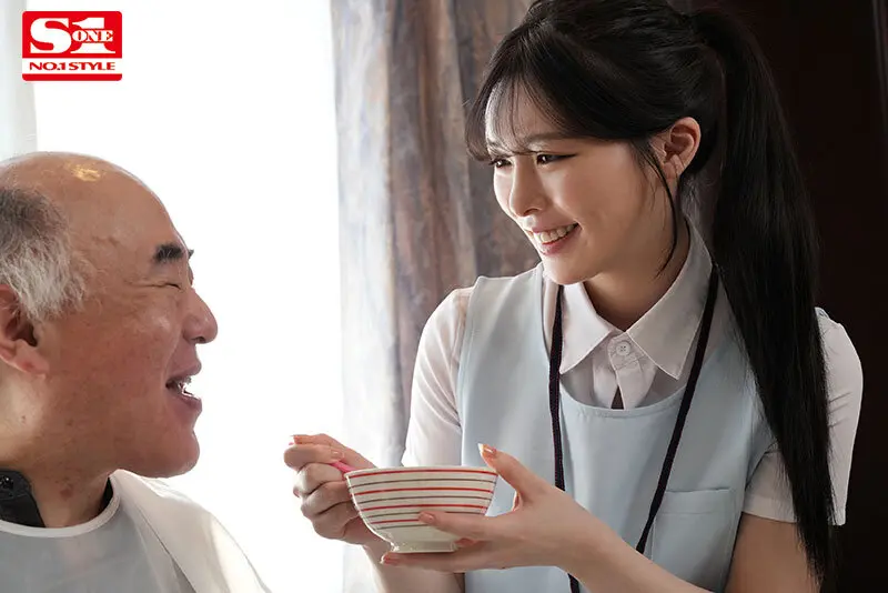SONE-344 - A kind and unrefusable caregiver gets her young body devoured... Ejaculation assistance of elderly person 10 persons orgy Rei Kuroshima with 3 raw photos